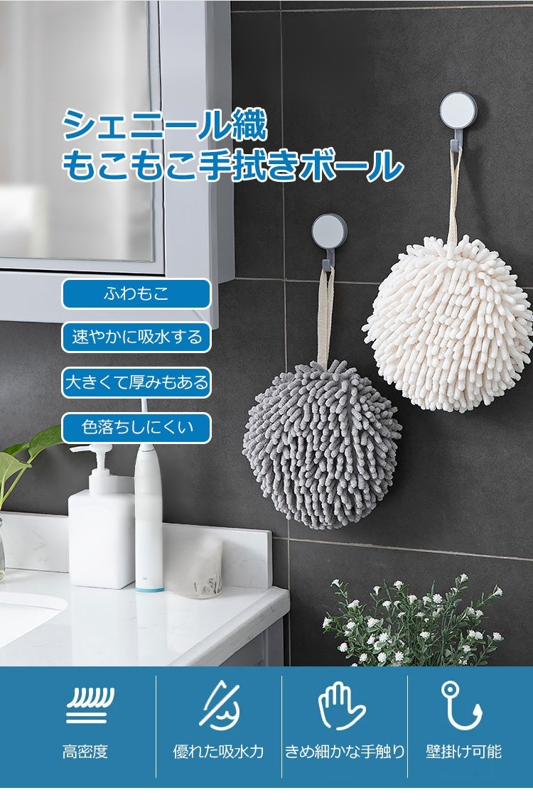 【シェニール織もこもこ手拭きボール】優れた吸水性&速乾性、肌に優しい、ふわふわ、使いやすい、高密度