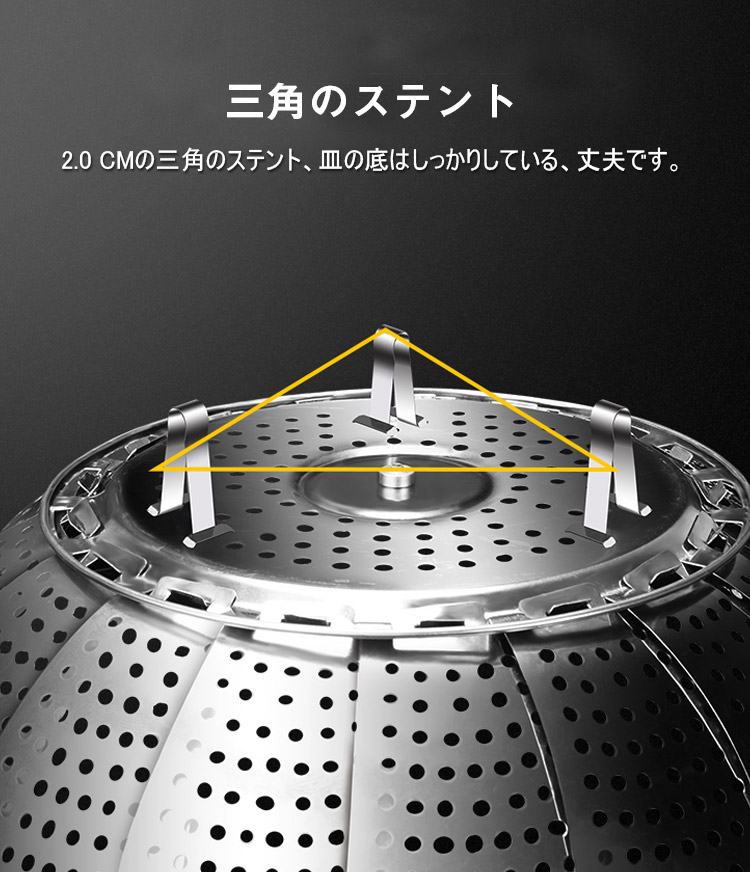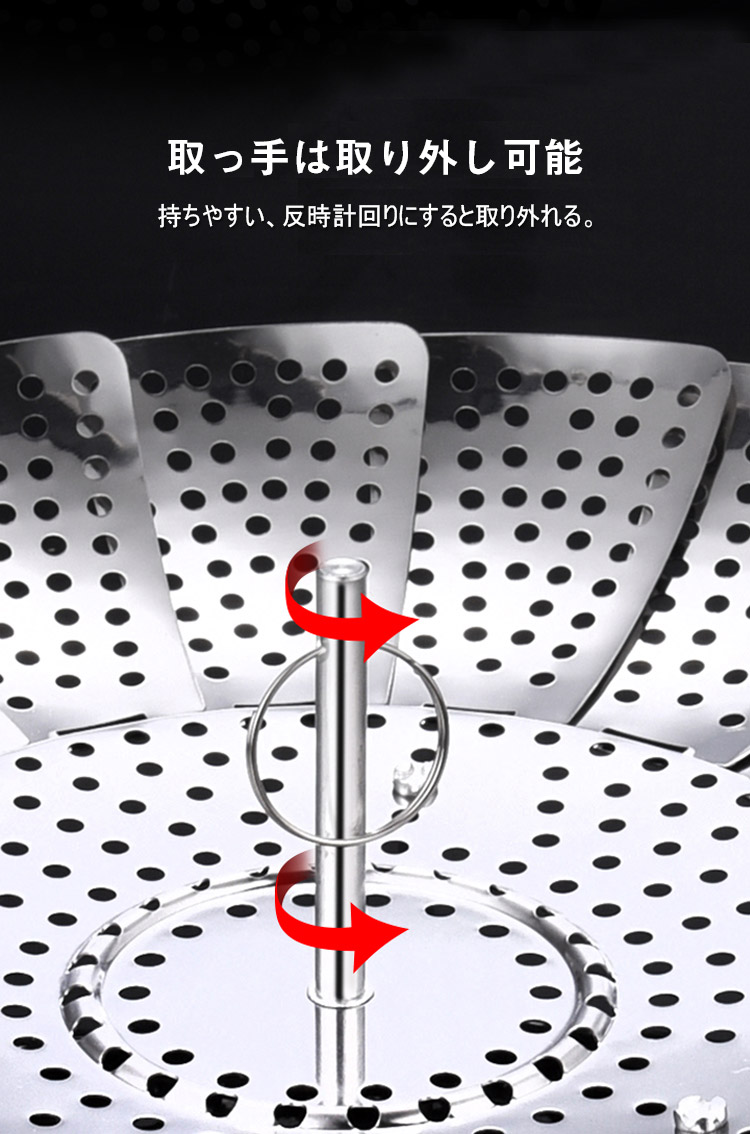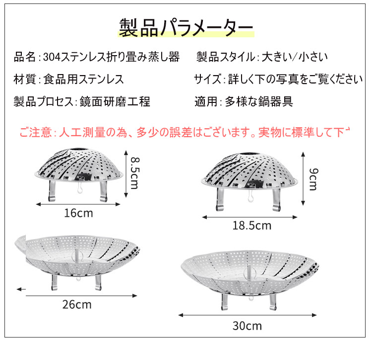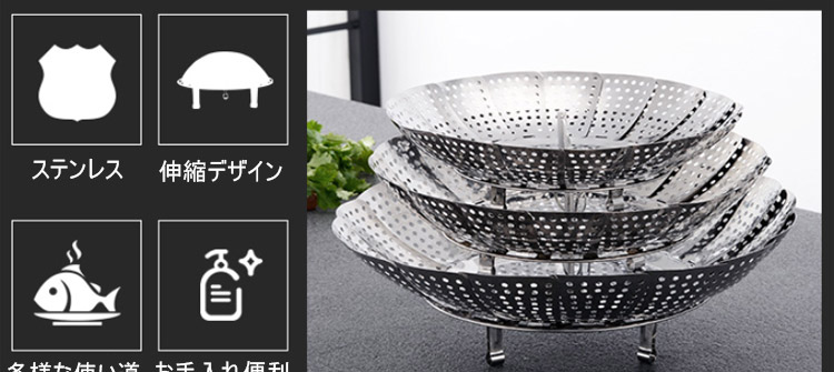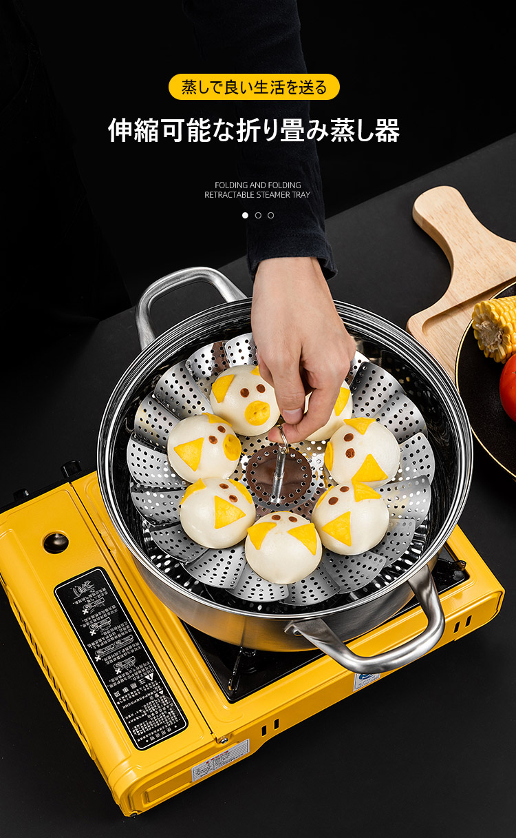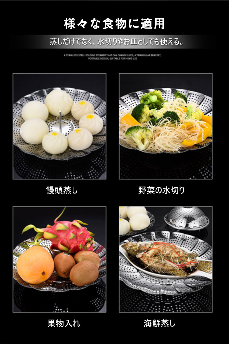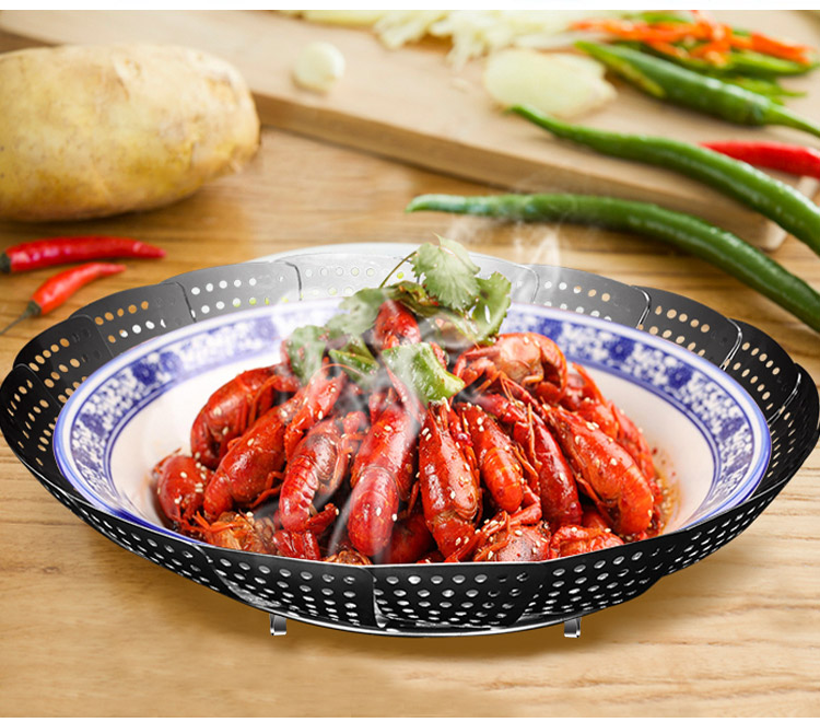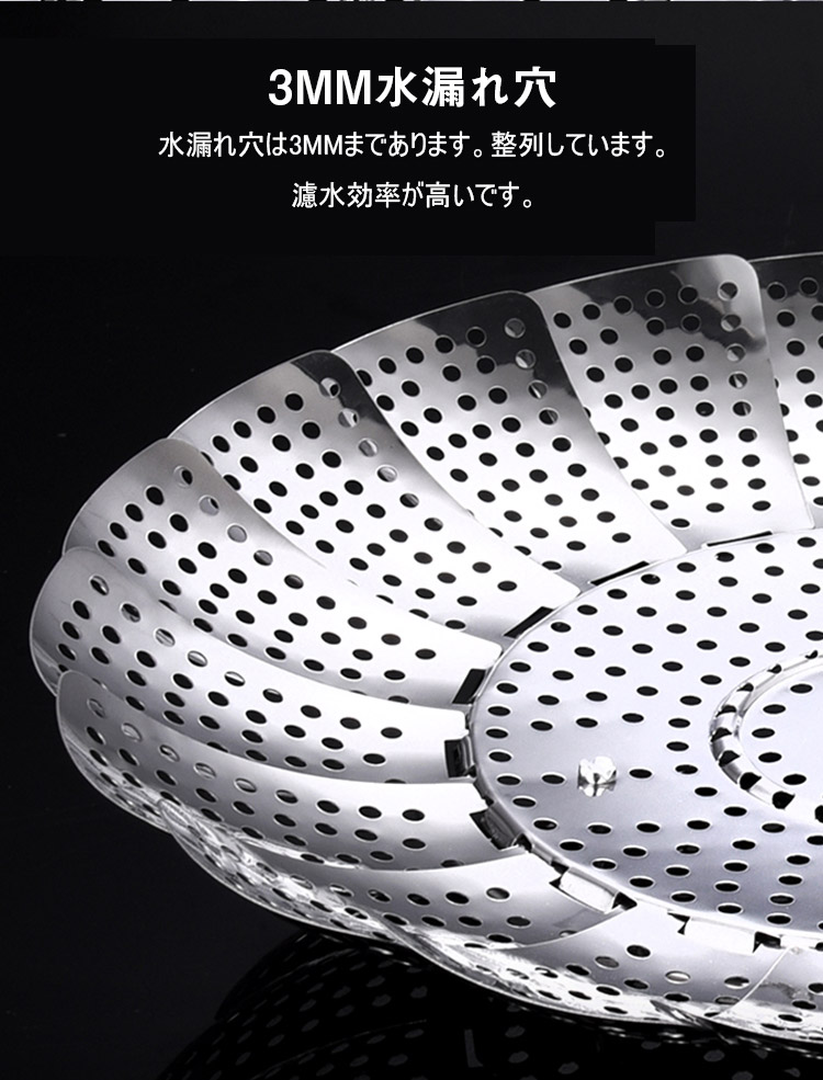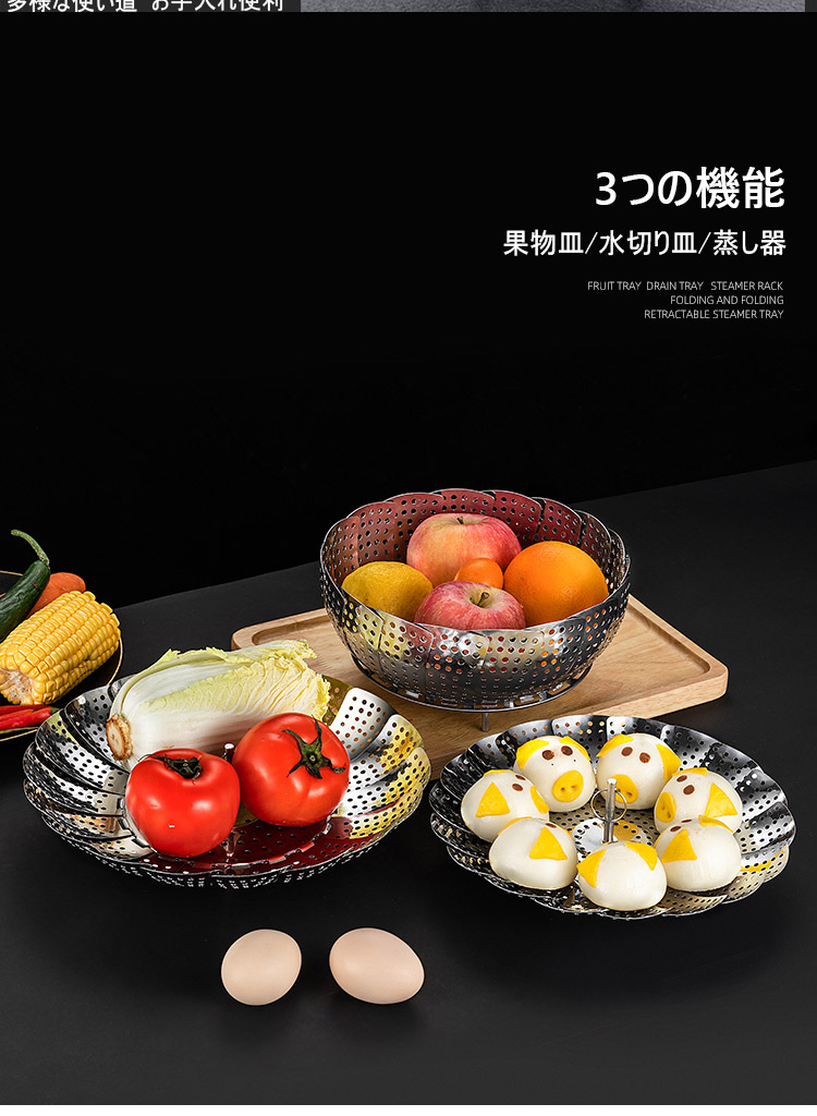 304ステンレス、伸縮可能な折り畳み蒸し器、伸縮デザイン、多くの鍋に適用、果物皿、水切り皿、蒸し器、多様な使い道、様々な食物に適用